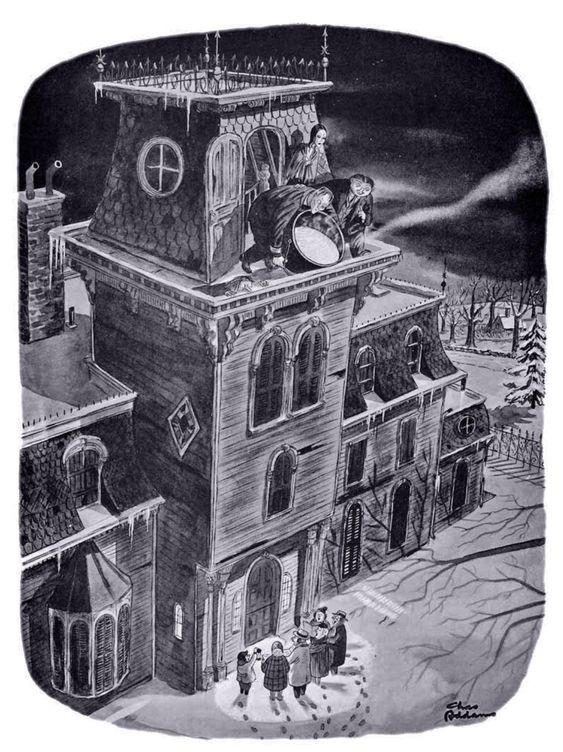 This is actually taken from one of the original Charles Addams cartoons. Present at the party are Anthony Hopkins as Hannibal Lecter, Robert DeNiro as Max Cady, and Beauty and the Beast. With their fortune legally taken away, they now have to live in a hotel until the real Uncle Fester shows up. In Parodyland, other monsters show up angry that they made a mockery of real movie monsters.