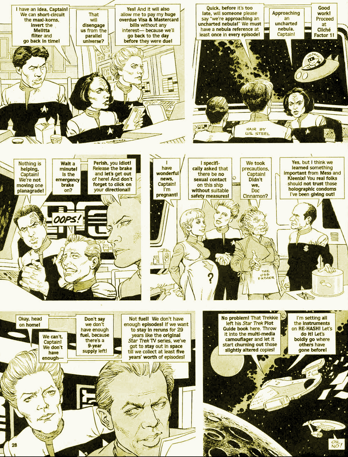In the Mad splash, the Columbo reference is a joke about an ill-fated series that Kate Mulgrew had starred in, Mrs. Columbo. It can't quite be called a spin-off from Columbo, because on that show his wife was often mentioned but never seen. Peter Falk disliked the idea of Mrs. Columbo and never appeared on it. In the second season the show tried to scrub the references to Columbo and stand on its own, but the ratings stayed low and it was cancelled after 13 episodes.